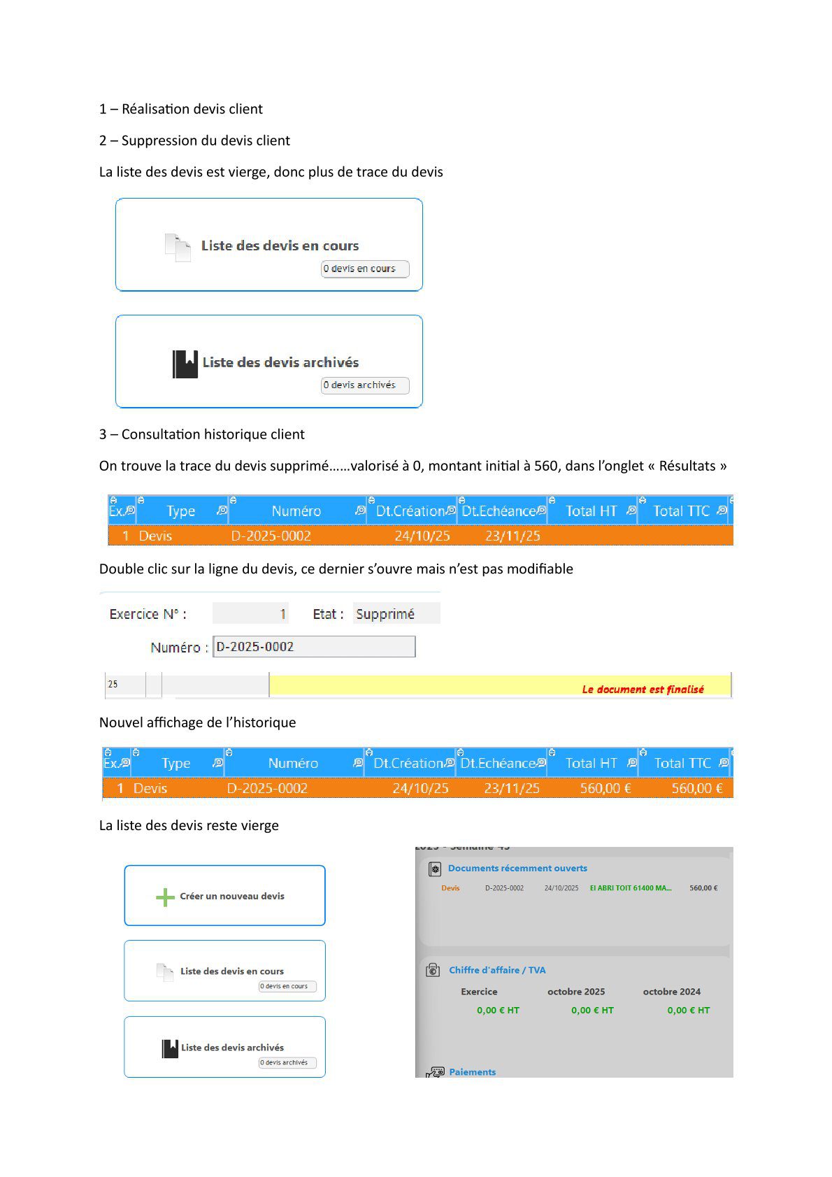 Je constate une anomalie suite à la suppression d'un devis sur la Version : 2.0.624.0