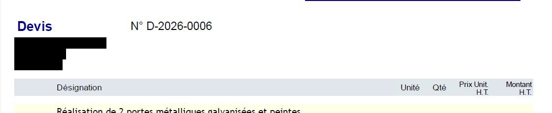 Après acceptation du devis par le client, je dois modifier la zone "Observations" pour mettre le numéro de commande du client et l'adresse des travaux.