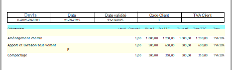 Je viens de télécharger la V2 du logiciel et j'ai un petit problème avec la ligne bleue "désignation" qui ne se voit pas en totalité et lorsque je crée le devis je ne peux pas noter les unités (ml, m²,m³ tonne...).Pourquoi dans les libélles il y a une ligne sur 2 qui est jaune alors que je les ai paramétrées blanches. Ma dernière question, est-il possible de créer une facture sans avoir fait un devis.Ci-joint un devis . 😧