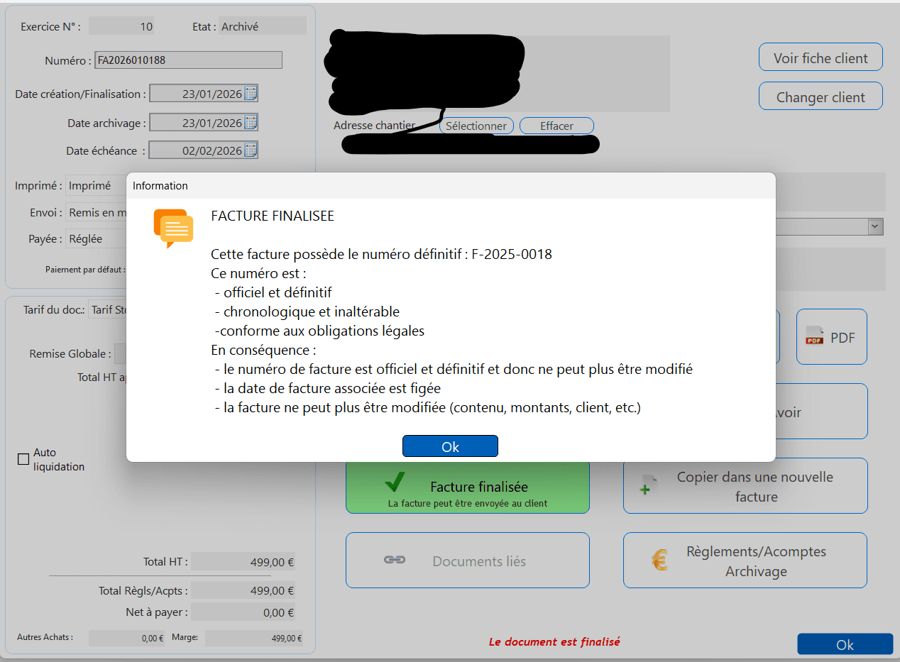 J'ai finalisé une facture et en cliquant sur son numéro en vue de le copier vers mon livre d'achats/recettes, j'ai le message suivant.