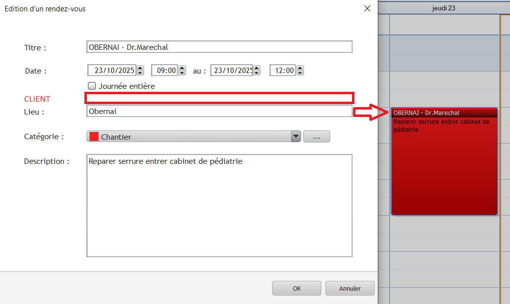 - Permettre d'associer un client à ce rendez-vous lui aussi visible.