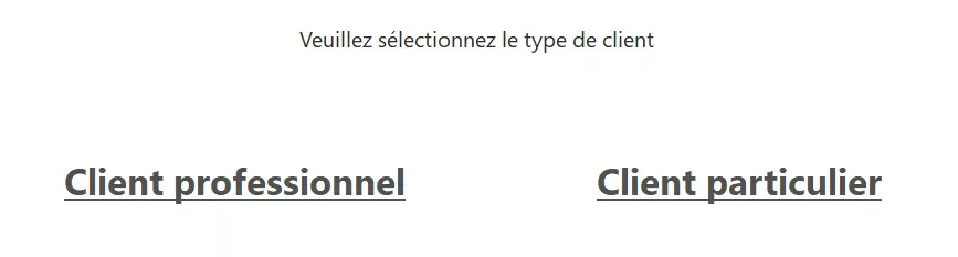 👉 Capture d’écran 1 : Choix du type de client (particulier ou professionnel)